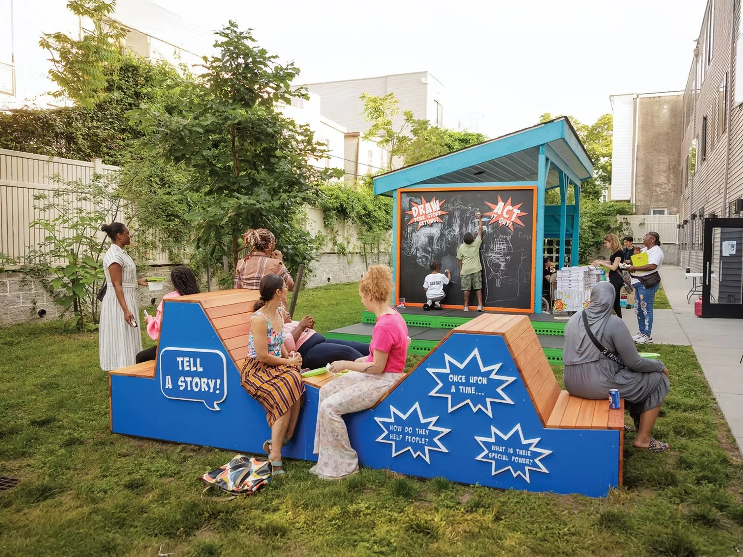 Located within affordable housing, the installation ensures that playful learning opportunities are embedded directly into daily life. Children do not need to travel to museums or enrichment centers since literacy, creativity, and performance are integrated into their own courtyard.