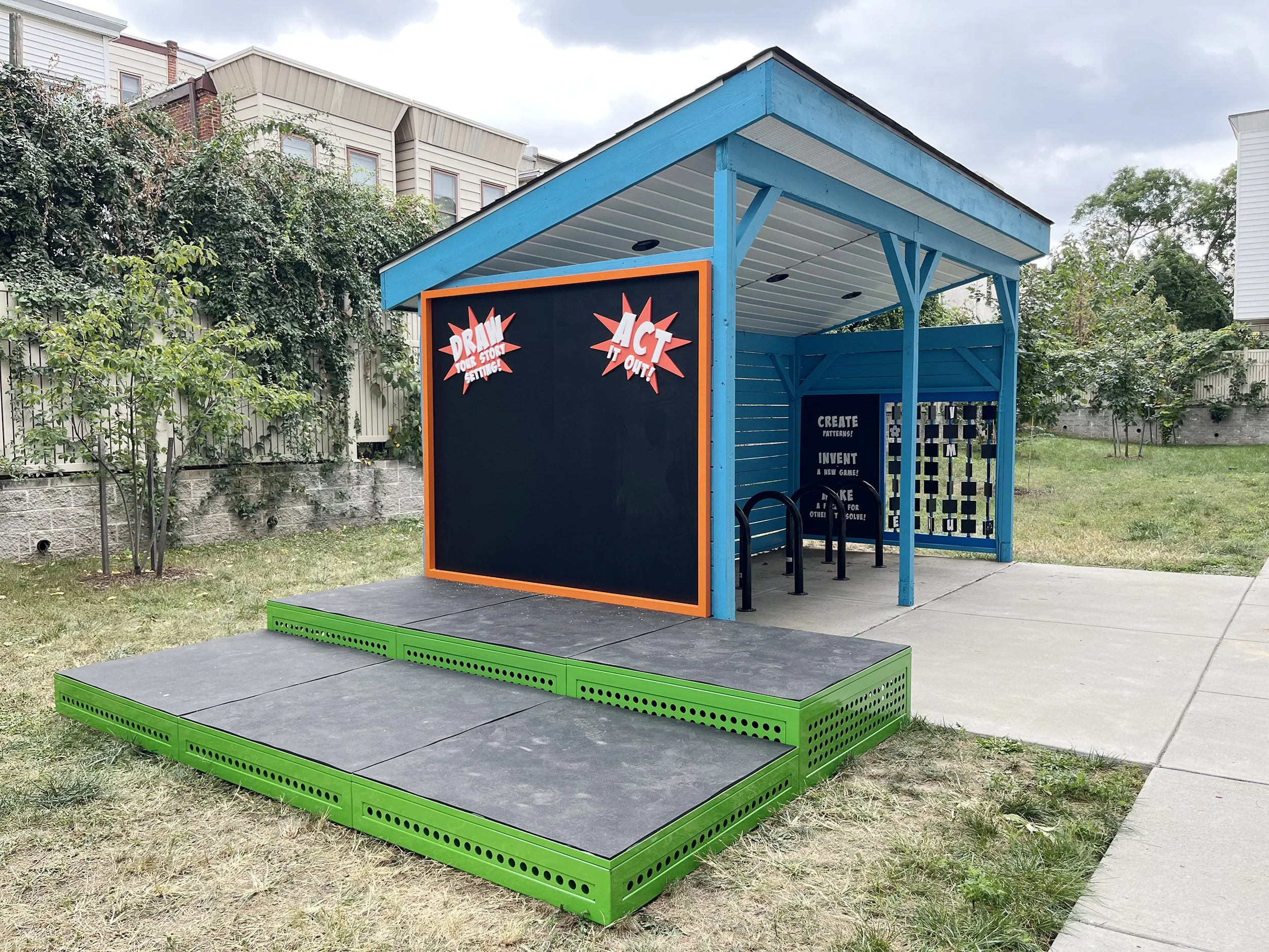 Working alongside architects and the Playful Learning Landscapes team, the goal was to transform the shed into an active literacy and performance space; One that invited storytelling, movement, collaboration, and repeat engagement while remaining durable and easy to maintain within a residential setting.